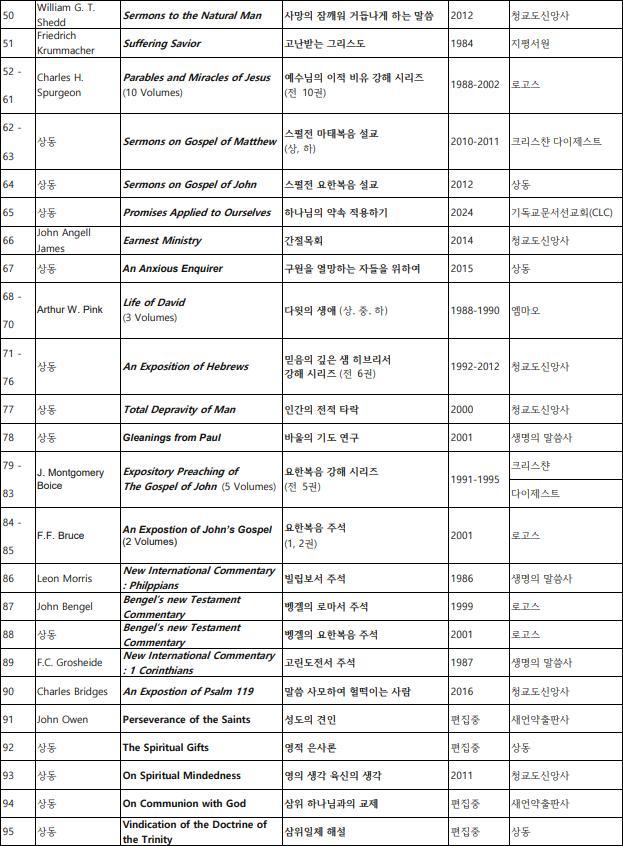서문 강 목사의 번역서 및 저서 목록(2025년 5월 15일 현재)