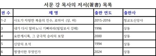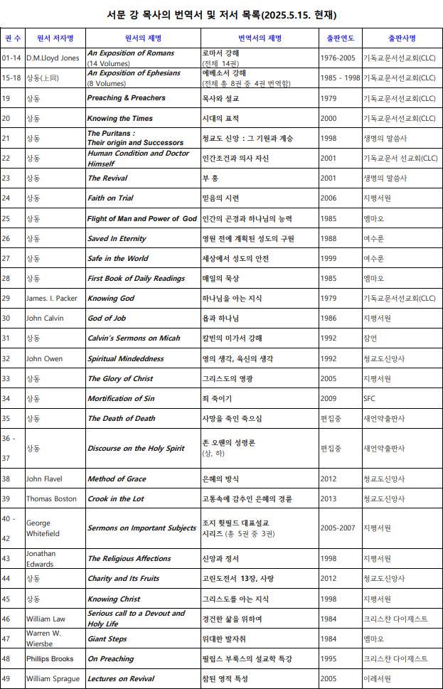 서문 강 목사의 번역서 및 저서 목록(2025년 5월 15일 현재)