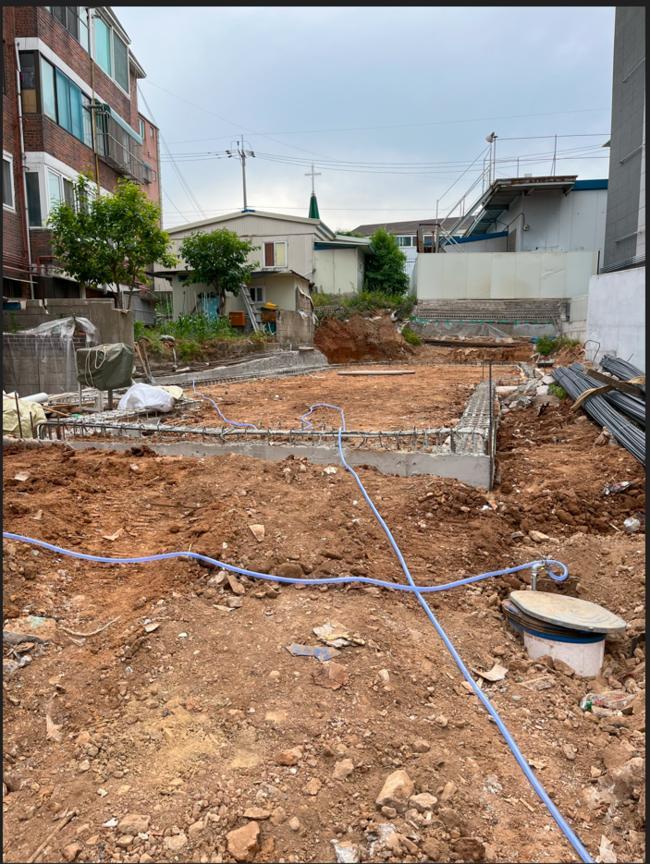 2023년 4월 중순에 큰딸의 친구 아버지가 기초콘크리트 공사를 하시는 분이 있는데 교회 안수집사님이셨습니다. 이분과 기초공사를 하기로 계약했고, 기초공사할 수 있는 초기 자금 1천만 원을 지인이 빌려줘서 기초공사를 시작했습니다. 전쟁과 비용 부족으로 건축이 중단된 지 1년 5개월 만의 일이었습니다.